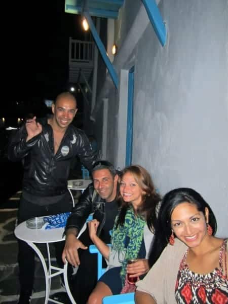 Anita & her pal Courtney met me in Mykonos after I’d already been there a while, so they reaped the benefits of all the *professional* networking I’d done with Susan… at Katerina’s, Skandinavian Bar and all the other local restaurants, cafes and dance party palaces. I made so many friends around town that I began to feel like a local. Cheers of “Angelena!” erupted every time I entered any of my favorite haunts, so it’s no wonder A.) I never wanted to leave and B.) Courtney, Anita & I had a blast.