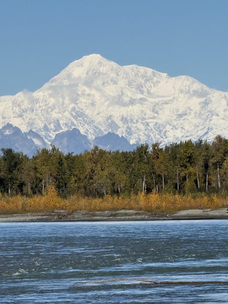 After the flight, we were basically speechless and giddy, wandering wild-eyed into town for lunch. I can’t even remember where we ate, I was so gobsmacked by the experience we just had. Talkeetna is an easy place to explore on foot, and there are plenty of casual spots for burgers, pizza, pastries and ice cream. If it’s a clear day, you can see Denali in all its breathtaking glory from the shore of Talkeetna Riverfront Park — again, it’s like 60 miles away but the mountain is so huge it seems much closer. Talkeetna is also a stop on the Alaska Railroad, so if the timing works, you might see the iconic train pull in, which is fun to watch and worth filing away for a future Alaska trip.